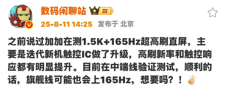 这一技术动向已引发连锁反应。消息显示,小米Redmi官方已开始调研新机“要不要配备165Hz刷新率面板”。行业观察人士指出,这显然是看到一加推进超高刷屏评估后采取的跟进策略。