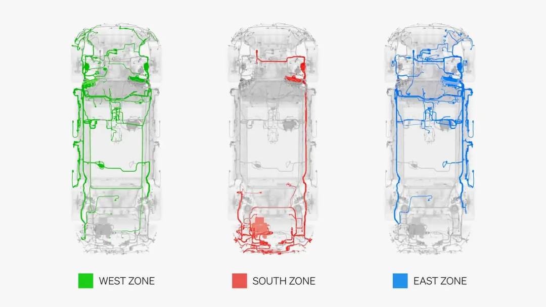 “分区架构”是电气系统设计中的又一重大突破,允许厂商通过分布在车辆各处的几台核心计算机来运行几乎所有功能,大大降低布局复杂性。